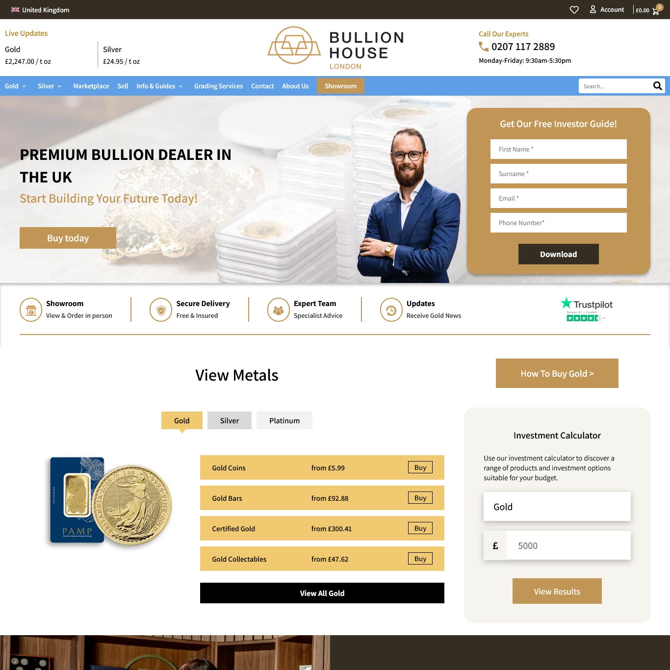As well as live prices online for fast and easy purchases, Bullion House offers a fully personalised buying service to assist customers in building a gold portfolio that meets their needs. With experienced in-house industry specialists available over the phone or in person via appointment at their London office, they can assist with regular price updates, growth reports and when the time comes to sell, Bullion House are always there to help.